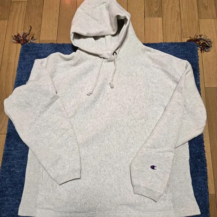 그레이 색상의 Champion 후드티,