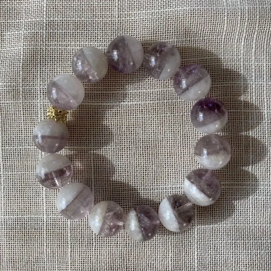 스모키 자수정 팬텀 디자인 팔찌 14mm 개성 있는 스모키 자수정 팬텀에 silver 꽃 론델 부품을 넣었습니다^ ^ 싱글 볼이 하나 더 있으니 그것도 함께 드립니다. 론델 부품을 넣고 만족하여 정화 후 컬렉션 BOX에 보관하고 있었습니다. 찾으시는 분이 계시면 잘 부탁드립니다^ ^ 사이즈: 안지름 약 16.5cm 크기 약 14.1~14.9mm 부품: silver925 방문해 주셔서 감사합니다(*^^*)