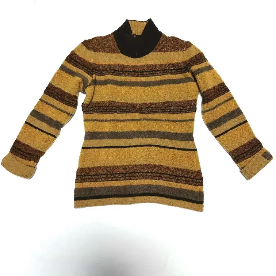 스트라이프 패턴의 니트 스웨터, 브라운 계열의 색감이며, 사이즈 42의 TRUSSARDI 제품.