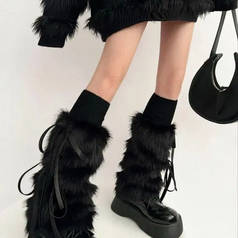 y2k 그런지 퍼 레그 워머 블랙 미밈 셀렉