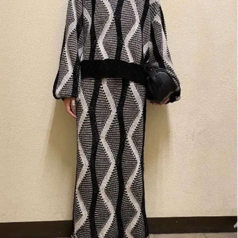물결 무늬 니트 상의와 스커트 세트, 벌룬 슬리브 디자인. - 색상: 블랙/화이트 - 디자인: 물결 무늬 - 소재: 니트 - 소매: 벌룬 슬리브 방문해 주셔서 감사합니다. 사이즈 - FREE SIZE
