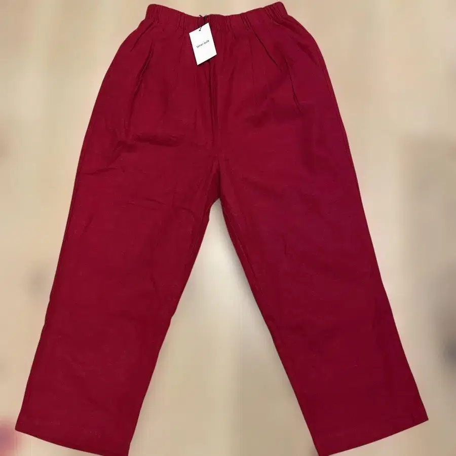 새상품 빨간색 린넨풍 캐주얼 팬츠 안감 부착