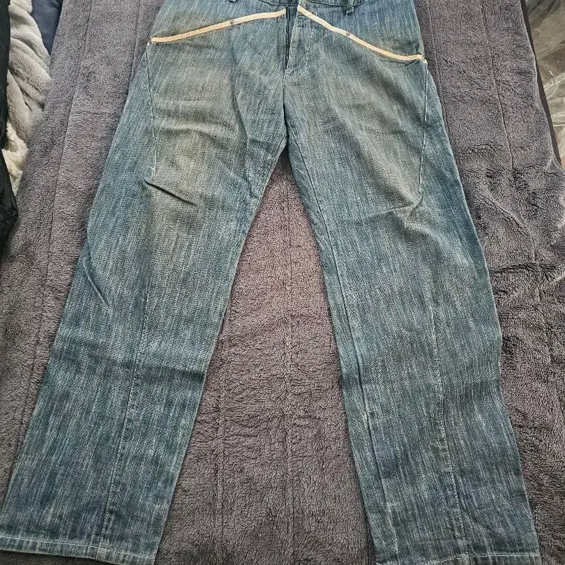 레어 백 채널 USED 가공 스트레이트 데님 팬츠