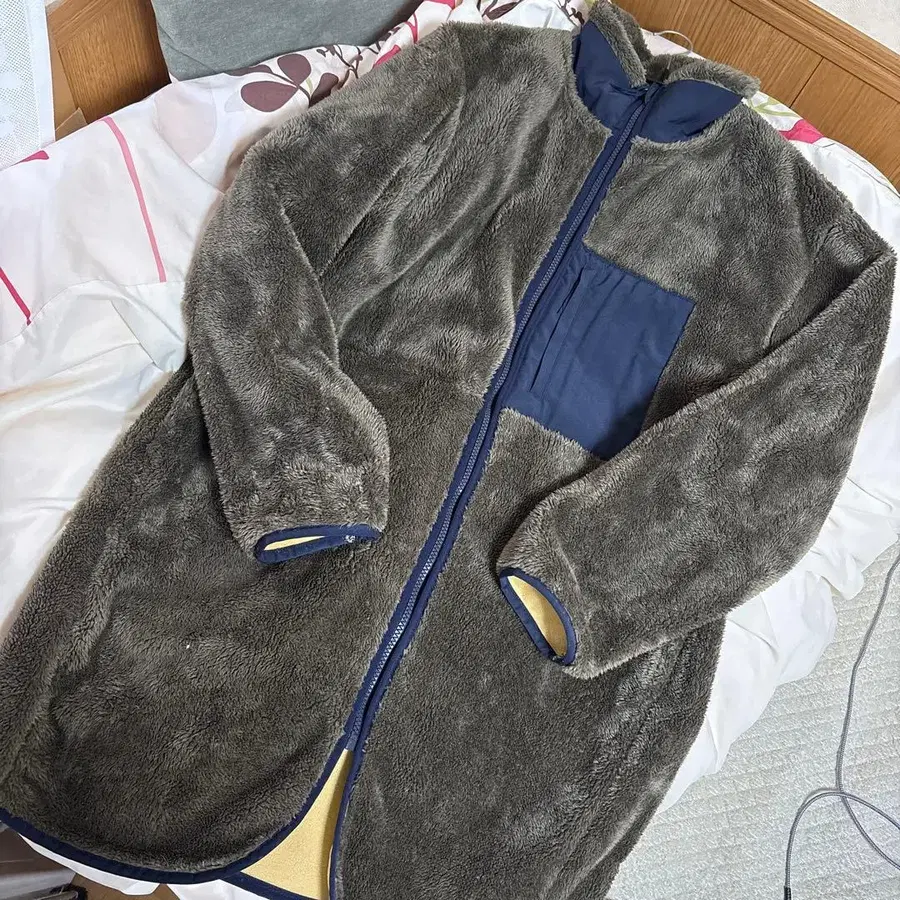 자동 번역되었어요. 원문보기보아 플리스 소재로, 포켓이 달린 풀 집업 코트입니다. 바람을 막아주는 느낌입니다.