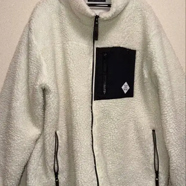 아이보리 플리스 자켓, 프론트에 블랙 지퍼 포켓 부착. - 색상: 아이보리 - 포켓: 프론트 지퍼 포켓 (블랙) - 디자인: 플리스 소재, 지퍼 개폐 - 스타일: 긴팔, 스탠드 카라 방문해 주셔서 감사합니다.