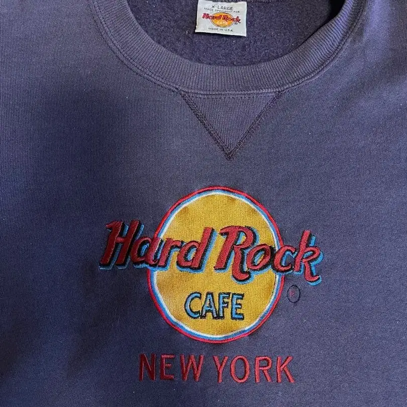 퍼플 색상의 90년대 Hard Rock Cafe 맨투맨, 뉴욕 로고 자수, XL 사이즈입니다.