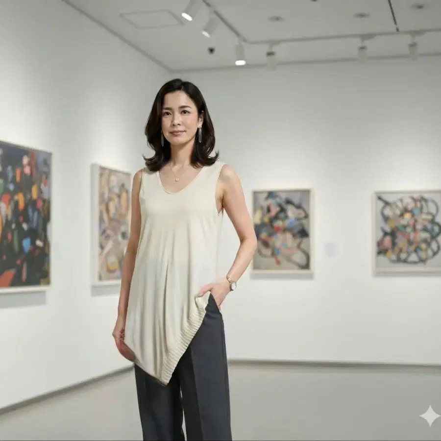 크림색 비대칭 밑단 슬리브리스 상의, 부드러운 원단으로 쾌적한 착용감. 1번째 이미지는 착용 이미지입니다 ♪ - 색상: 크림색 - 디자인: 비대칭 밑단 - 소재: 부드러운 원단 - 스타일: 슬리브리스 - 택: 미사용 택 포함 방문해 주셔서 감사합니다. 색상 - 베이지 계열 패턴 - 무지 계절 - 봄/여름 얼룩, 찢김, 냄새 등 - 없음