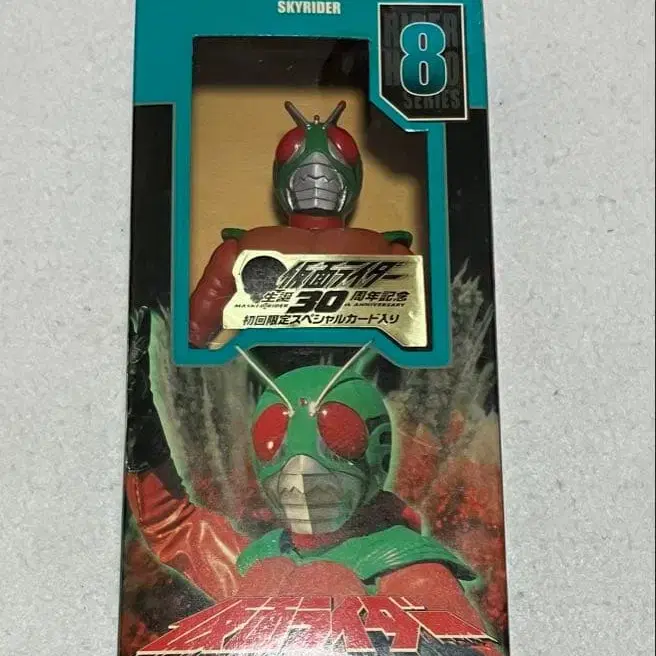 탄생 30주년 기념 최초 한정 스페셜 카드 포함 라이더 히어로 시리즈 8 가면라이더 스카이라이더 카드 포함 중고품이므로 약간의 흠집, 오염, 노후화 등이 있을 수 있습니다. 이미지를 확인하신 후 구매 부탁드립니다. 이미지 추가 등이 필요하시면 댓글로 부탁드립니다.