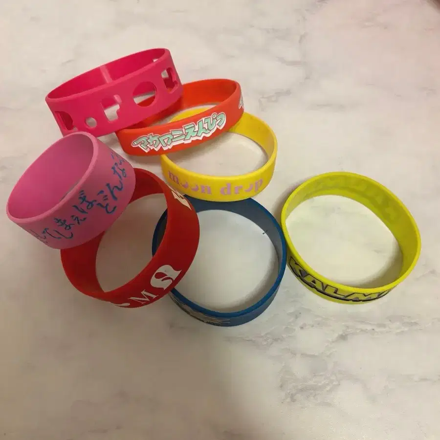 마카로니 연필 1, 영 스키니 1, Mr. 폴테 2, KALMA 2, moon drop 1 종류의 러버 밴드입니다! 꼭 이 기회에 만나보세요!