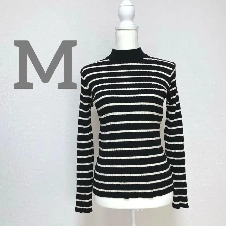 디스코트 DISCOAT 모크넥 보더 니트 블랙 계열 M