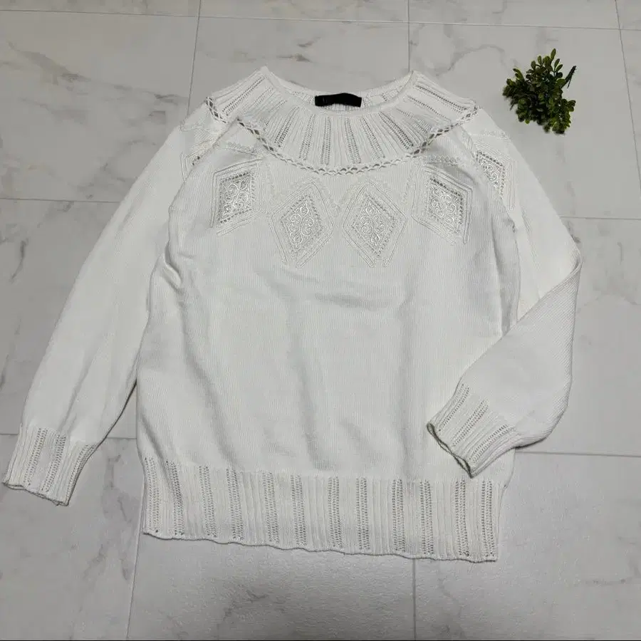 새상품급 S 더마 컬렉션 자수 레이스 모티브 긴팔 니트 화이트 스웨터