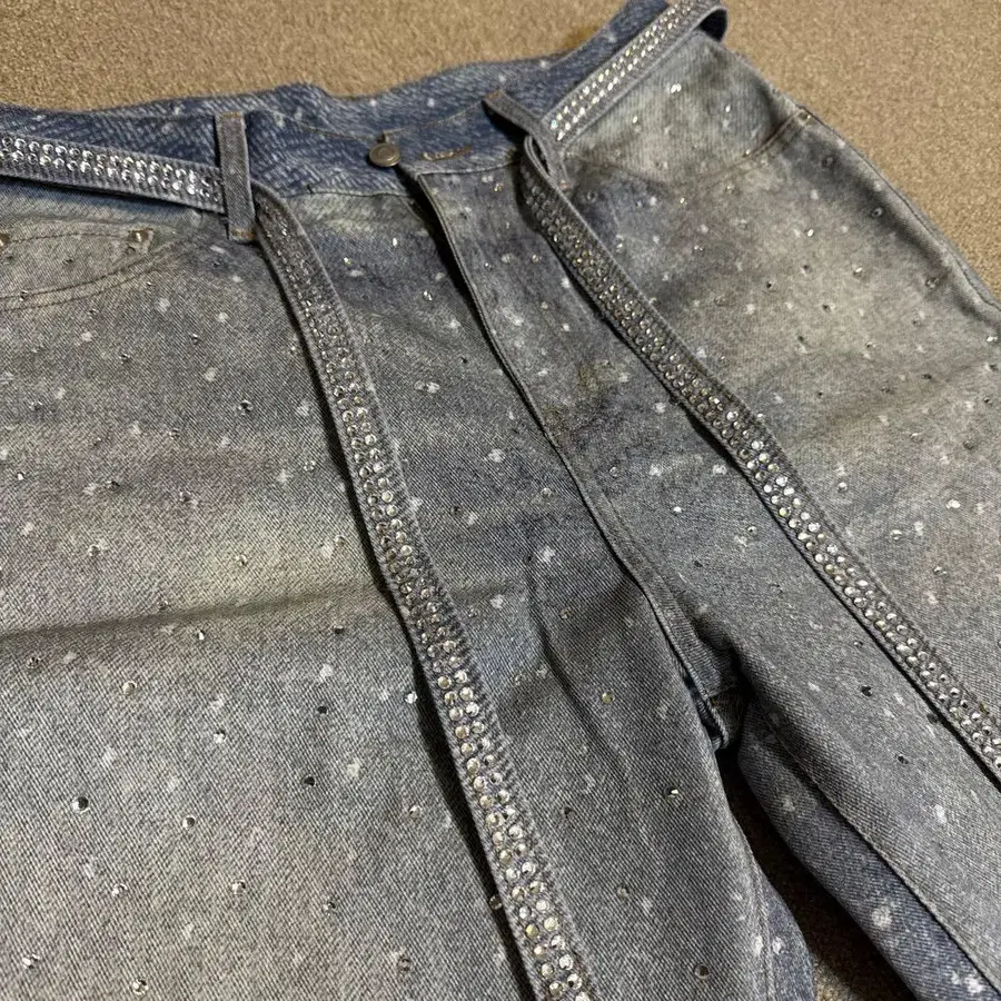 오로라 큐빅 장식 빈티지 루즈 데님 팬츠