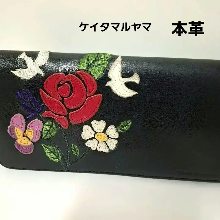 블랙 가죽에 화려한 자수가 놓인 장지갑.