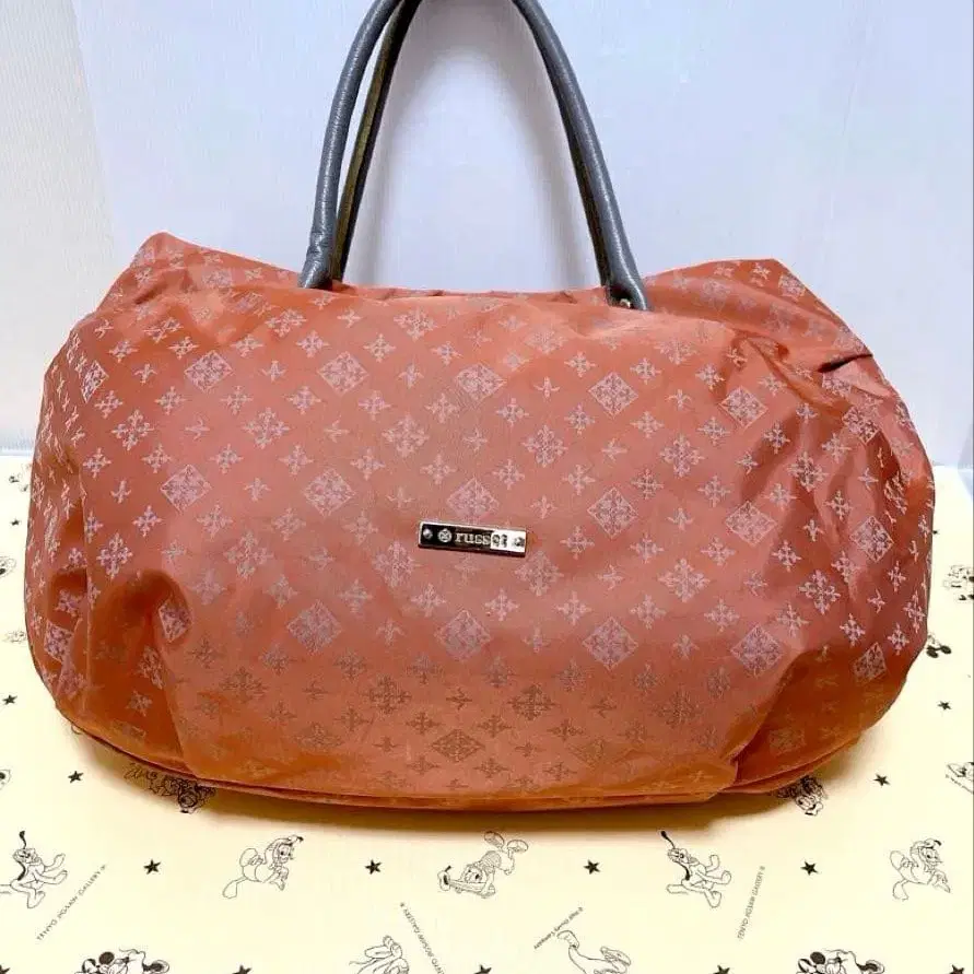 오렌지 패턴 디자인에 지퍼 포켓이 달린 토트백.