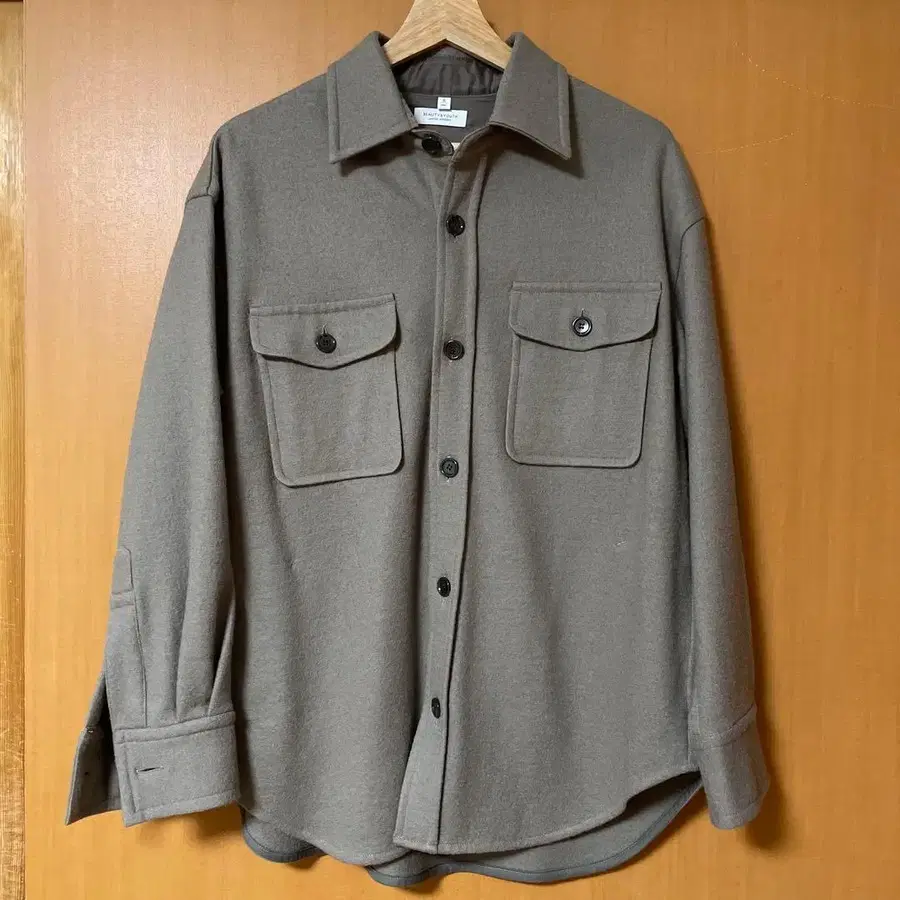 자동 번역되었어요. 원문보기울 100% 베이지 셔츠 자켓, 포켓 부착