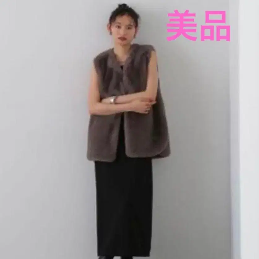 [ 새상품급 ] NATURAL BEAUTY BASIC 퍼 베스트 차콜