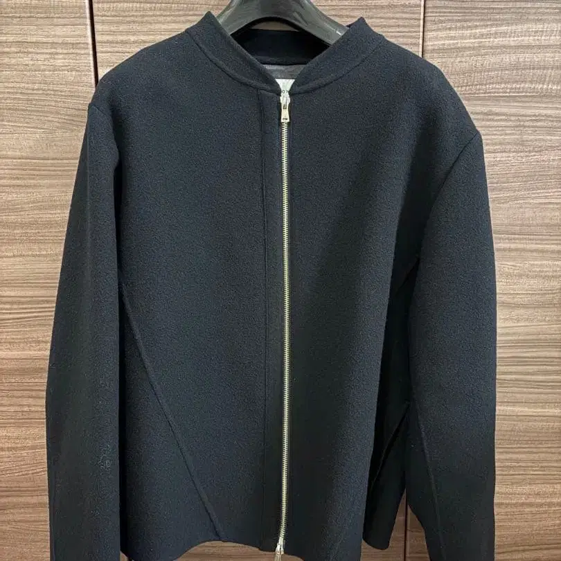 자동 번역되었어요. 원문보기지퍼가 달린 심플한 블랙 자켓, 노카라 디자인으로 스타일리시합니다.