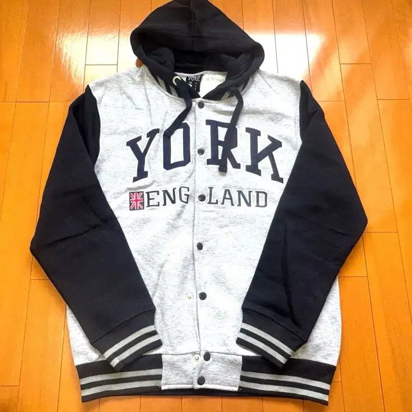 후드 부착 맨투맨, YORK 프린트 포함. - 색상: 그레이/네이비 - 디자인: 후드 부착, 단추식 - 프린트: YORK ENG-LAND - 국기: 영국 국기 디자인 - 소재: 맨투맨 소재 - 소매: 긴팔, 스트라이프 디자인 방문해 주셔서 감사합니다.
