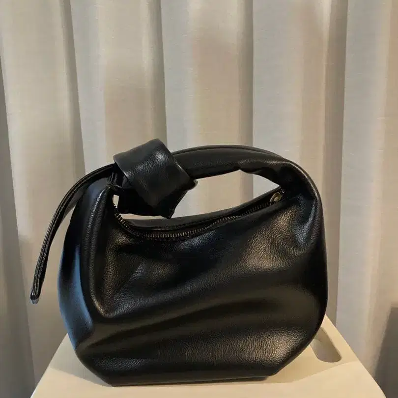매듭 손잡이가 특징인 블랙 가죽 핸드백입니다. - 색상: 블랙 - 디자인: 핸드백, 매듭 손잡이 - 지퍼: 상단 지퍼 개폐 - 소재: 인조 가죽 안쪽에 포켓 있음 세로: 약 21cm (손잡이 포함) 가로: 약 24cm 바닥: 약 23 x 11cm 방문해 주셔서 감사합니다. 컬러 - 블랙 계열
