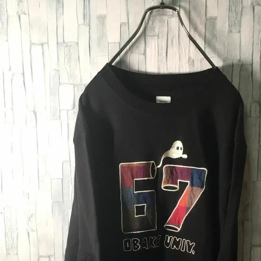 유령 OBAKE 전면 자수 로고 맨투맨 블랙 남성용 M 사이즈