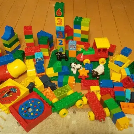 레고 블록과 동물 피규어, 자동차 등 이미지. 상태 양호합니다. 케이스 등 없습니다.