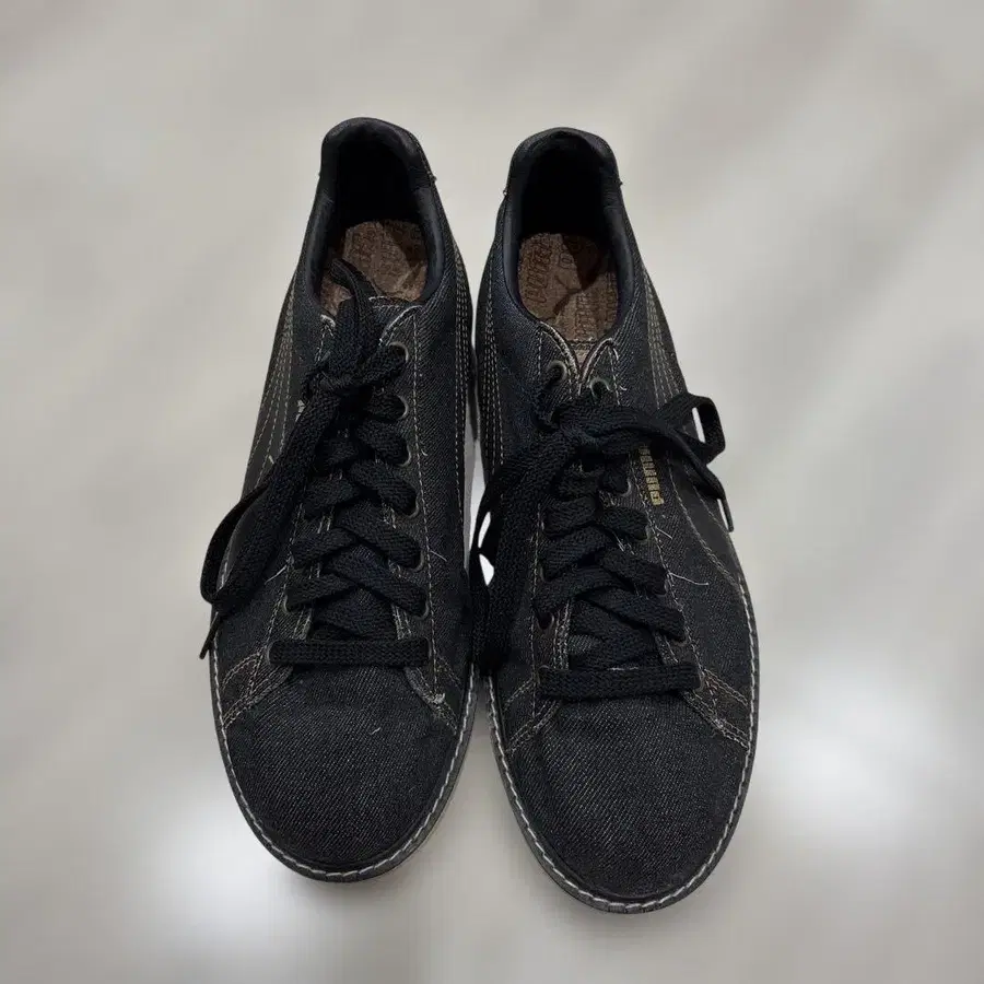 PUMA 데님 소재의 스니커즈입니다. 사이즈 - 25cm 메인 컬러 - 데님 블루 벽장에 넣어두어 먼지가 쌓였기 때문에 얼룩이 있습니다.