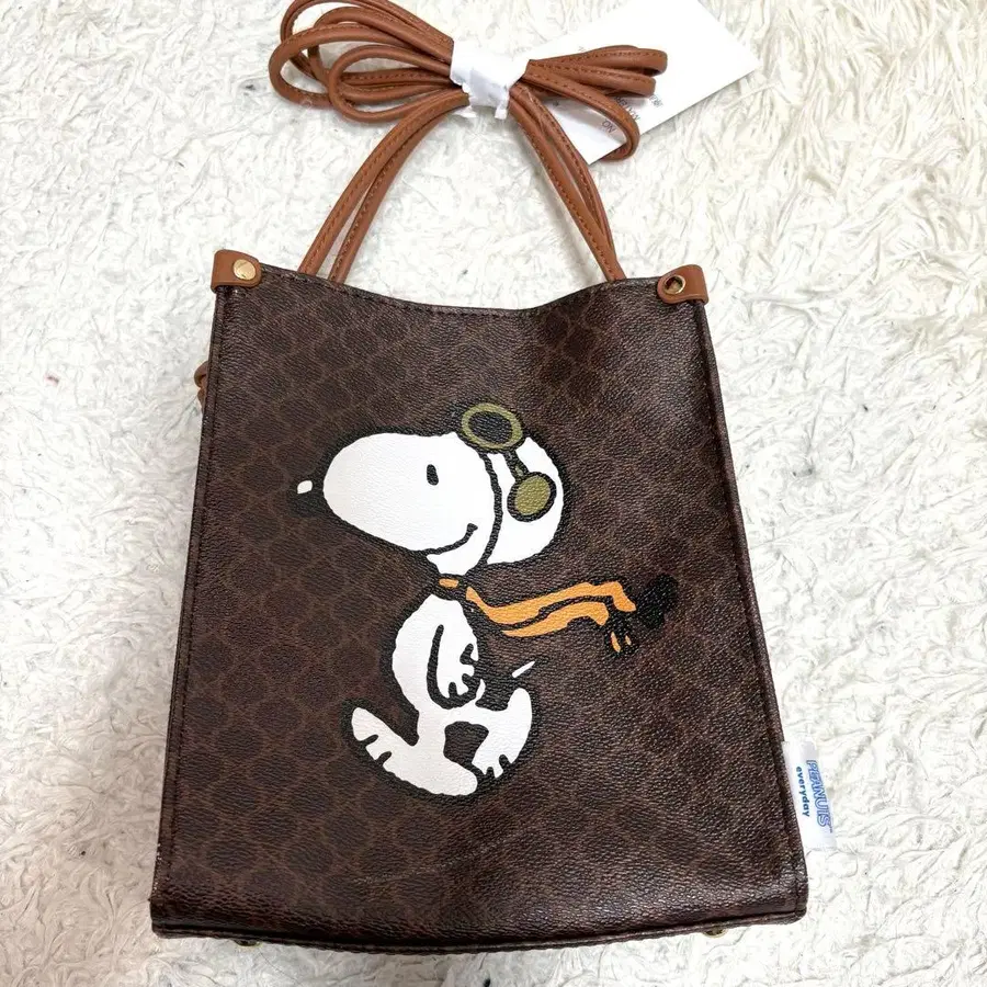 새상품급 스누피 PEANUT 숄더백 마카남 패턴 사선 브라운