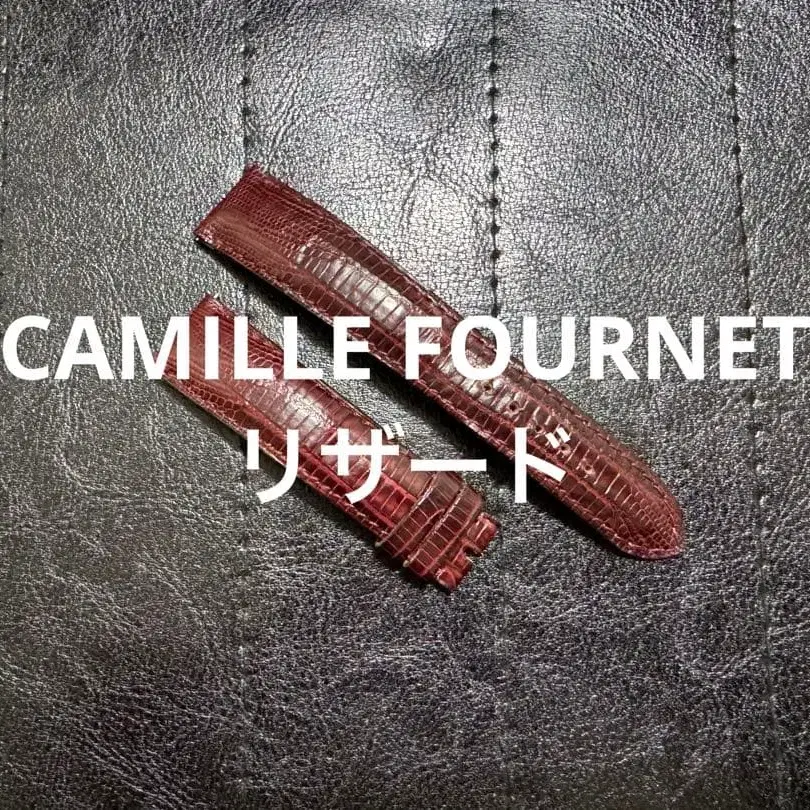 까미유 포르네의 벨트입니다. 와인 레드 계열의 리자드 소재입니다. 약간의 사용감이 있습니다. 정가 30,800엔 사이즈 설치 폭 19mm 비죠 폭 16mm 전체 길이 약 18.5cm 테지유