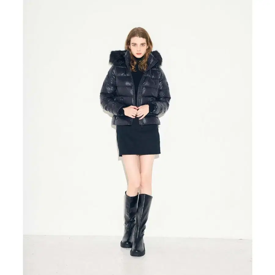 퍼가 달린 후드의 블랙 숏 다운 자켓.