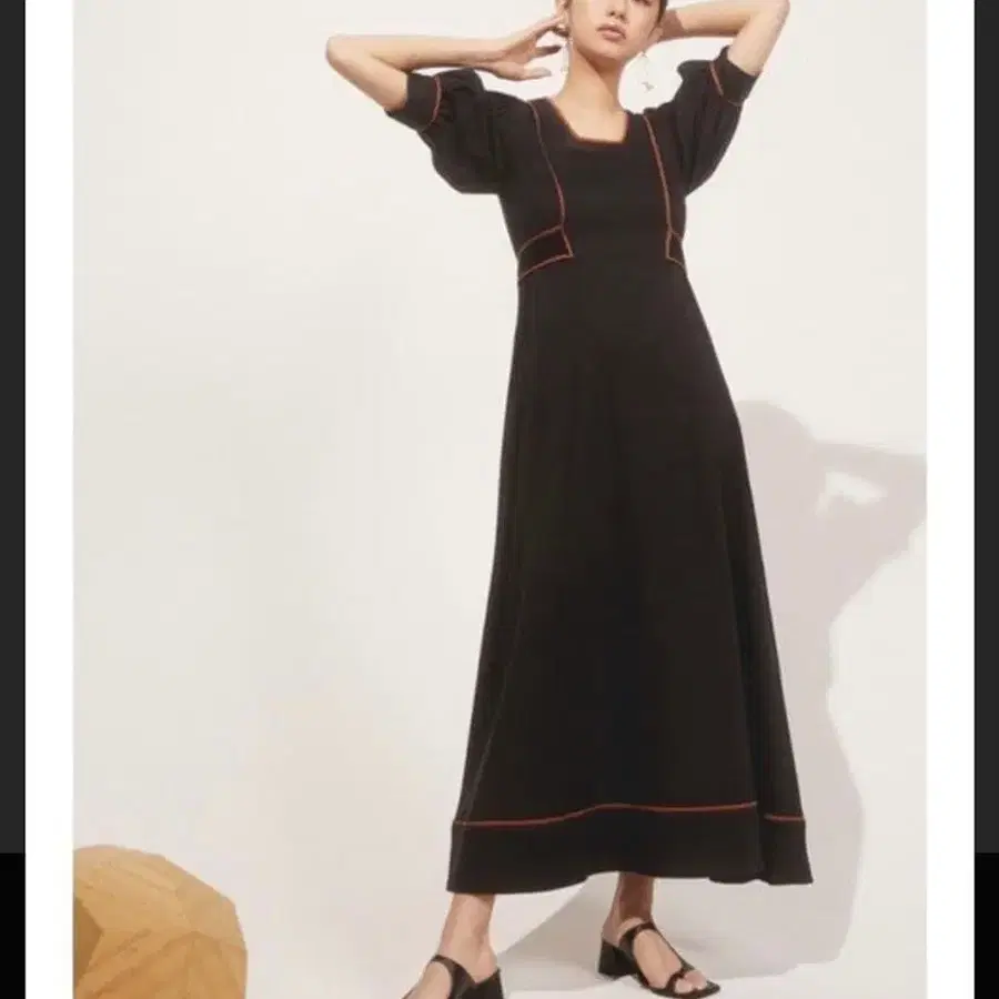 컬러 파이핑이 들어간 심플한 블랙 롱 원피스.