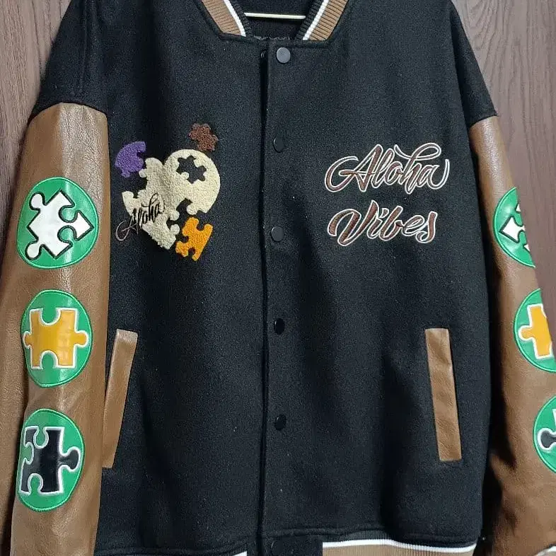 자수 퍼즐 피스가 특징인 바시티 자켓(스타디움 점퍼)입니다 ☺︎ 두 번 정도밖에 입지 않아 새상품급입니다. 소매의 인조 가죽에도 갈라짐은 없습니다^^ 매우 튼튼하게 만들어졌습니다! 물론 남성용으로도 좋습니다 ☺︎ 사이즈 등 자세한 내용은 곧 게재하겠습니다 m(UωU)m - 색상: 블랙, 브라운 - 디자인: 자수 포함, 퍼즐 피스 모티브 - 스타일: 바시티 자켓 - 백 디자인: 큰 자수 로고 방문해 주셔서 감사합니다. 컬러 - 블랙 계열 얼룩, 찢김, 냄새 등 - 없음