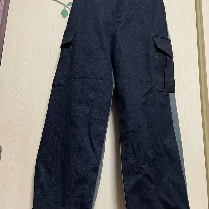 블랙 데님 x 차콜 그레이 카고 팬츠입니다.