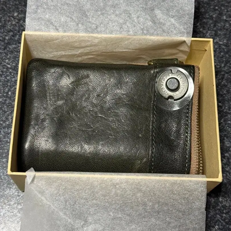 일비종떼 접이식 지갑 골드 버튼 가죽 브라운 미니 지갑 주름 가죽