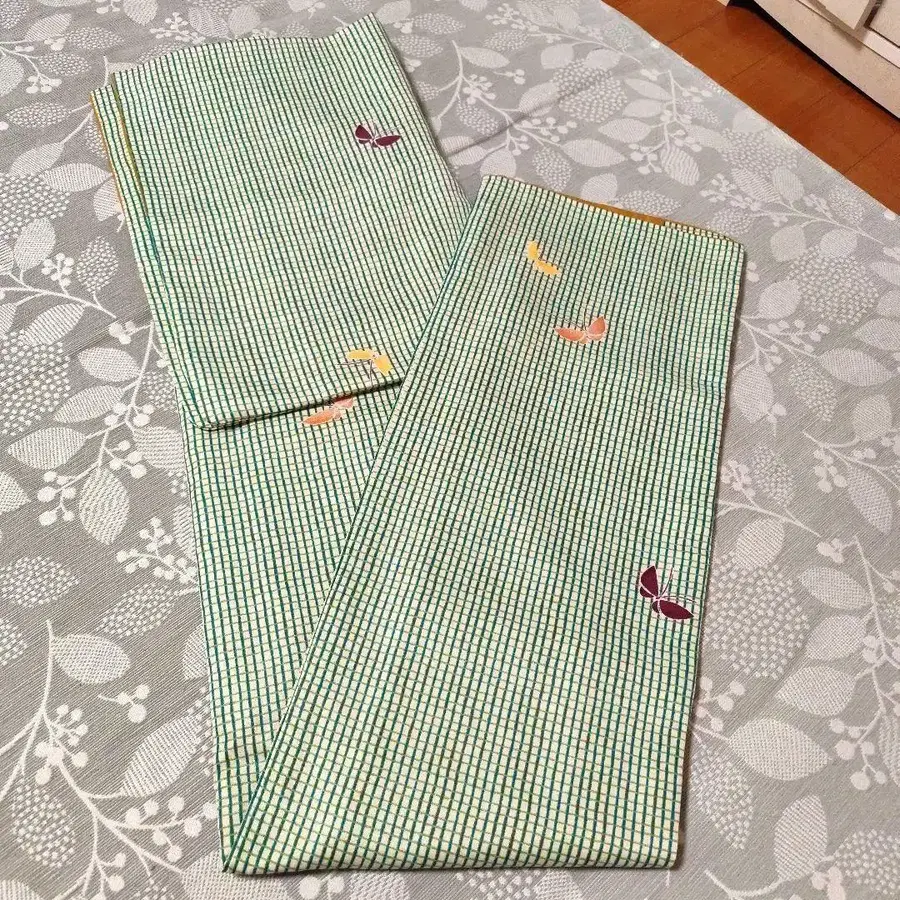 미사용 워셔블 폴리에스테르 기모노 코몬 체크와 나비