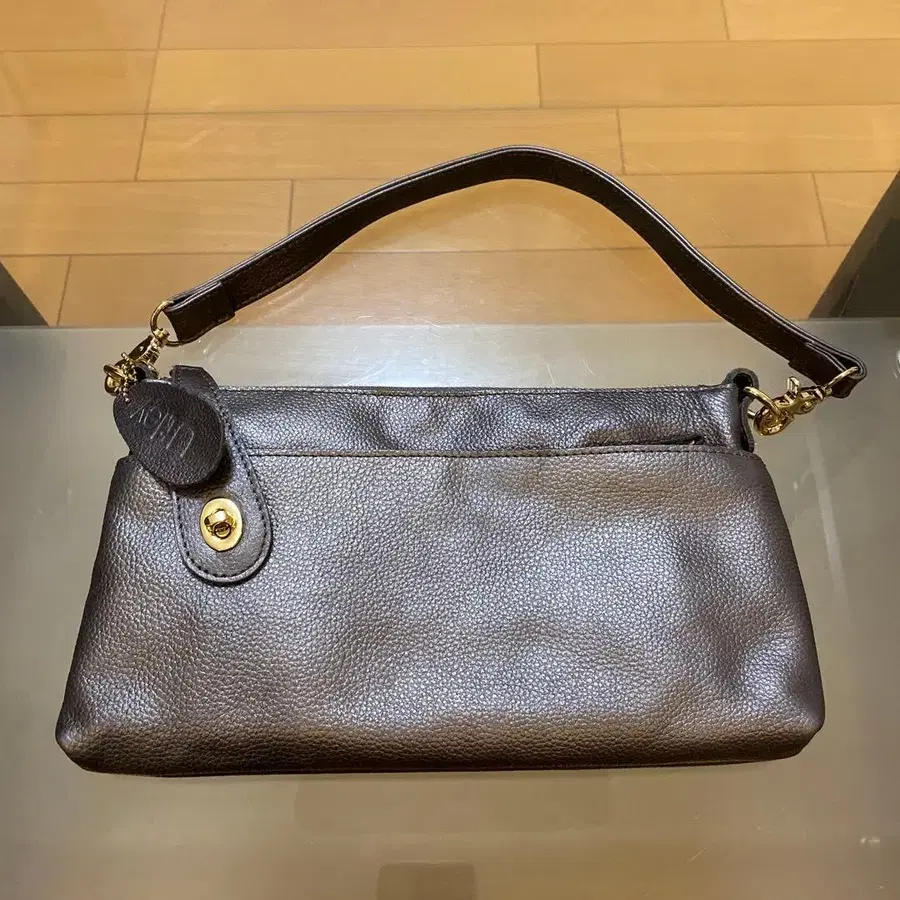 다크 브라운 색상의 가죽 숄더백입니다. 내부에 지퍼 포켓이 있습니다. 사이즈: 세로 약 17cm, 가로 약 29cm, 바닥 약 3cm - 색상: 메탈릭 - 소재: 가죽 - 디자인: 심플한 숄더백 - 내부 포켓: 지퍼 포켓 있음 - 외부 포켓: 지퍼 포켓 있음 방문해 주셔서 감사합니다.