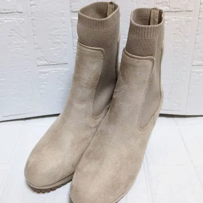 새상품이지만 신으려고 했기 때문에 상자나 택은 없습니다. 사이즈 L (24cm~24.5cm) 와이드 힐로 안정감이 있으며, 밑창도 미끄럼 방지 사양이 되어 있습니다. #Rady #mimiRady #사이드고어부츠 #숏부츠 #베이지