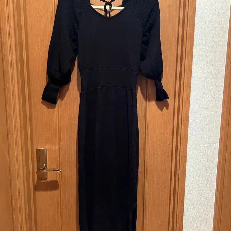 • dazzlin 퍼프 슬리브 블랙 롱 니트 원피스