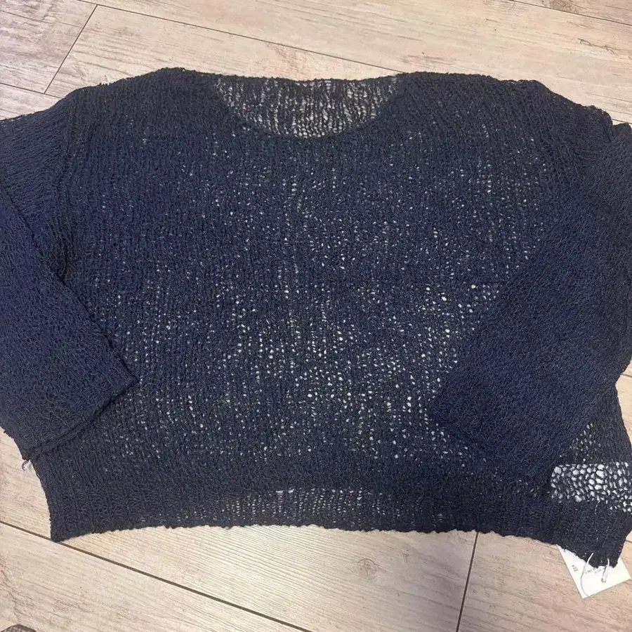 자동 번역되었어요. 원문보기비침이 있는 네이비 니트탑, 가벼운 디자인으로 봄/여름에 최적입니다.