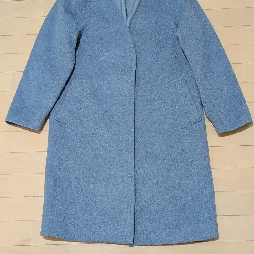 • A4762 미라 오웬 롱 코트 울 노카라 파랑 스카이블루 F