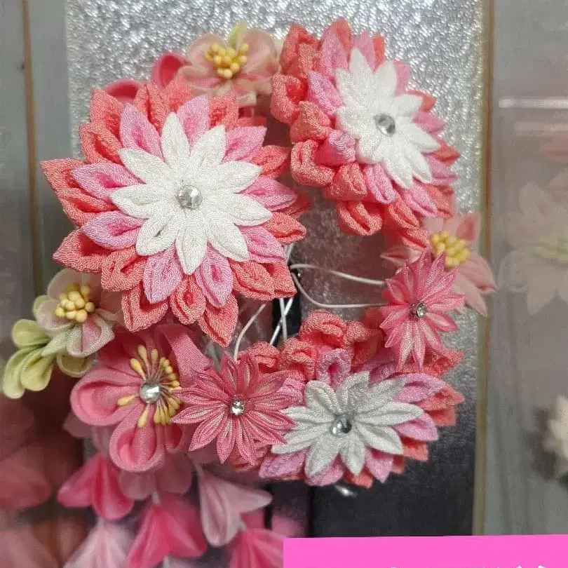 츠마미자이쿠(조각 천을 접어 만드는 일본 전통 공예)로 만들어졌습니다.