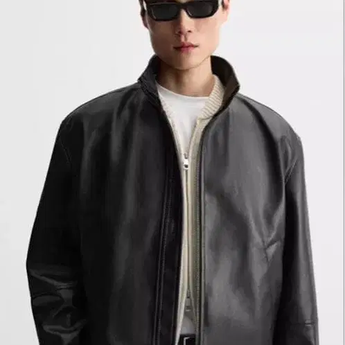 자동 번역되었어요. 원문보기스탠드 칼라와 지퍼가 달린 블랙 가죽 아우터