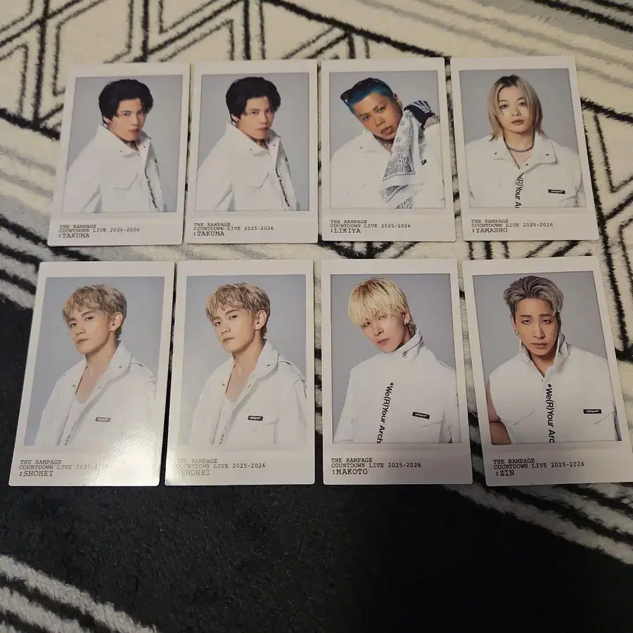 THE RAMPAGE COUNTDOWN LIVE 2025-2026 공식 굿즈 포토 카드 8장 묶음 판매입니다. 내용물 확인을 위해 개봉했습니다. [ 세트 내용 ] 총 8장의 세트입니다. 고토 타쿠마 (TAKUMA): 2장, 1장 시크릿 LIKIYA: 1장 야마모토 쇼고 (YAMASHO): 1장 우라카와 쇼헤이 (SHOHEI): 2장 (동종) 하세가와 마코토 (MAKOTO): 1장 진 (ZIN): 1장 #THERAMPAGE #RAMPAGE #란페 #LIKIYA #진 #야마모토쇼고 #우라카와쇼헤이 #하세가와마코토 #고토타쿠마 #포토카드 #포토카 #카우콘