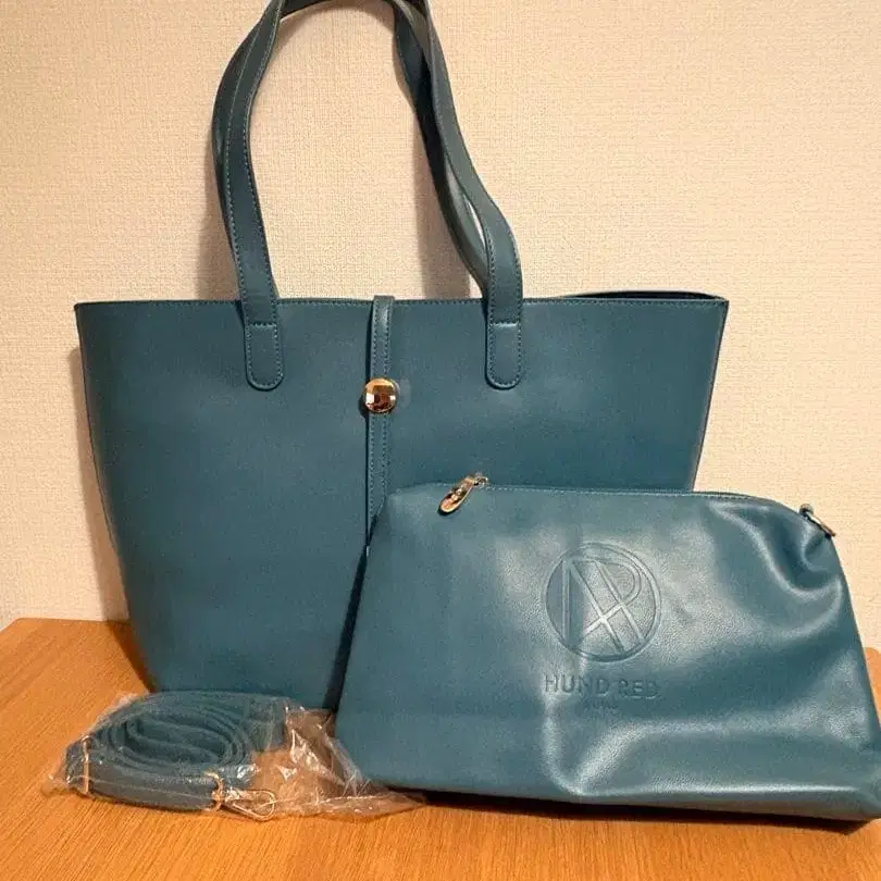 파란색 HUNDRED 숄더백, A4 사이즈 서류도 들어갑니다.