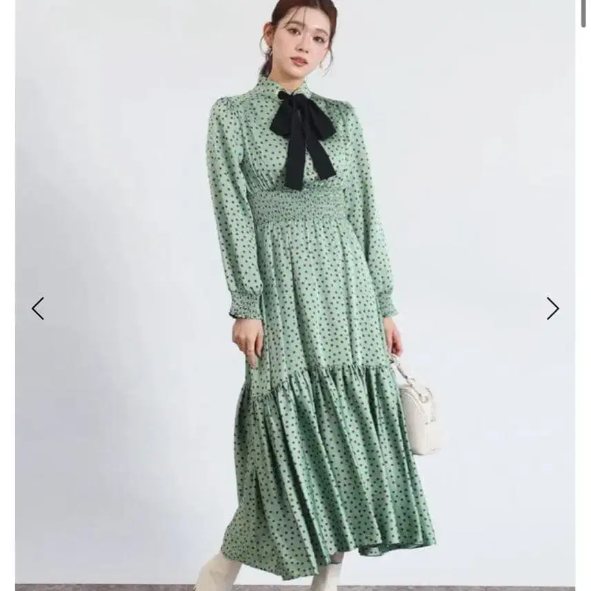 #블랙 도트 무늬 원피스 벨벳 리본 포함