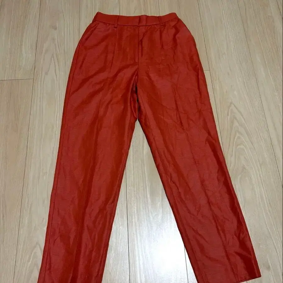 광택감이 있는 오렌지 색상의 슬랙스. - 색상: 오렌지 - 스타일: 슬랙스 - 소재: 불명 (광택감 있음) 방문해 주셔서 감사합니다. 사이즈 - M