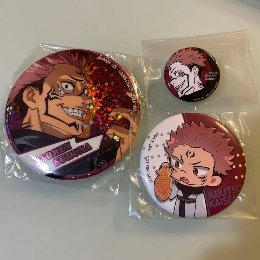 모두 미사용이지만, 봉투를 교체한 것도 있습니다. 또한, 왼쪽 캔뱃지의 봉투에는 셀로테이프가 붙어 있습니다.