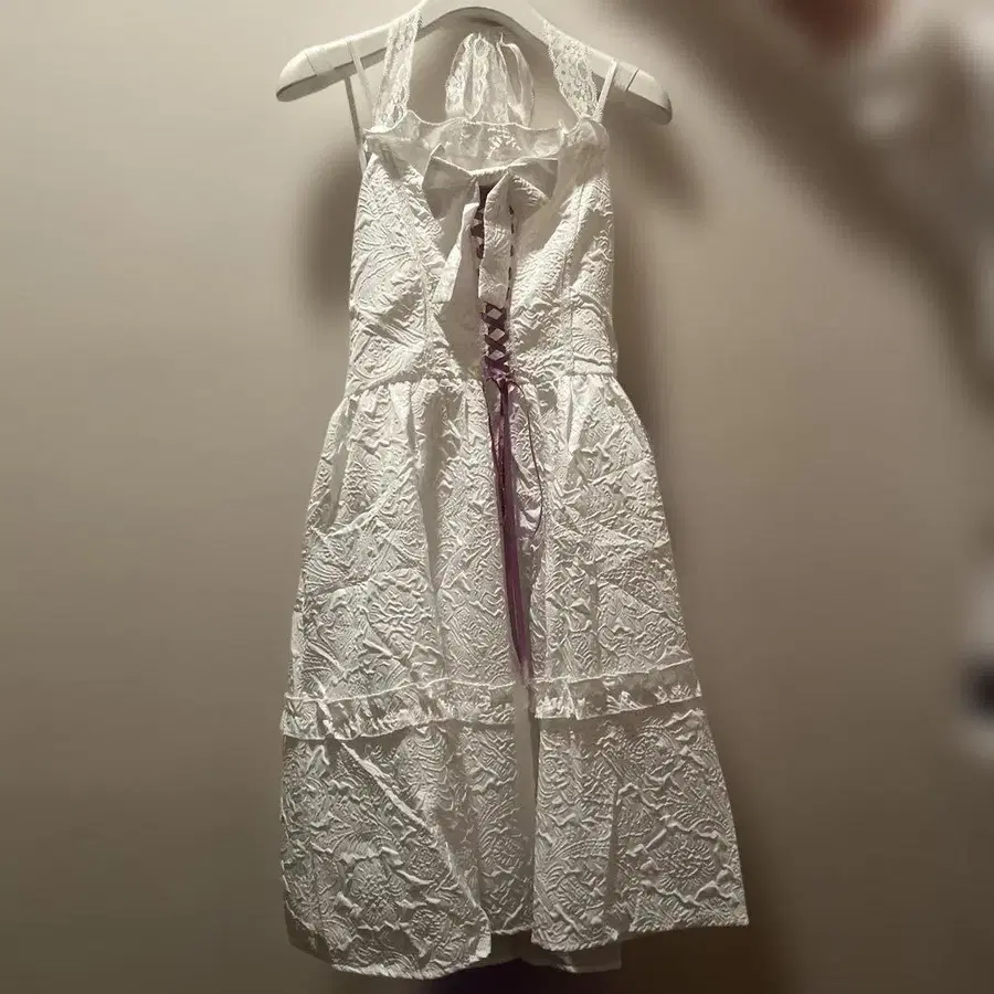 레이스 소재의 화이트 슬리브리스 원피스, 리본과 레이스업 디자인이 특징입니다. 리본은 나중에 설치되므로, 원하시면 별도 판매도 가능합니다. - 색상: 화이트 - 디자인: 레이스 소재, 리본 포함, 앞면 레이스업 - 스타일: 슬리브리스, 무릎 기장 방문해 주셔서 감사합니다. 사이즈 - M 사이즈 - L