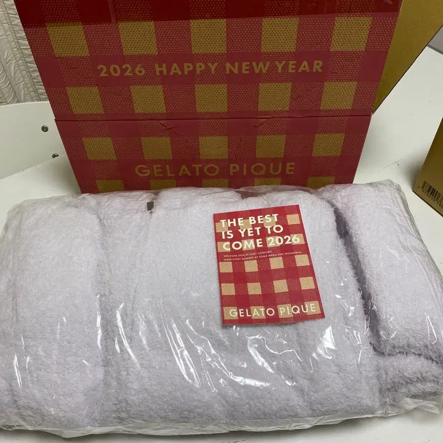2026년 신년을 축하하는 GELATO PIQUE의 라이트 핑크 룸웨어 세트. - 브랜드: GELATO PIQUE - 연도: 2026 - 특징: 신년 기프트 박스 포함 - 색상: 라이트 핑크 3종 세트 (보들보들한 상하의와 삭스) 방문해 주셔서 감사합니다.