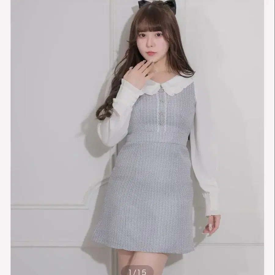 pium 피움 비쥬 버튼 프릴 칼라 원피스