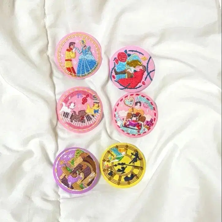 즉시 구매 ⭕️ 디즈니 자수 캔뱃지 6개 세트 슈가 러쉬 마리 잠자는 숲속의 미녀 신데렐라 라푼젤 피터팬 팅커벨